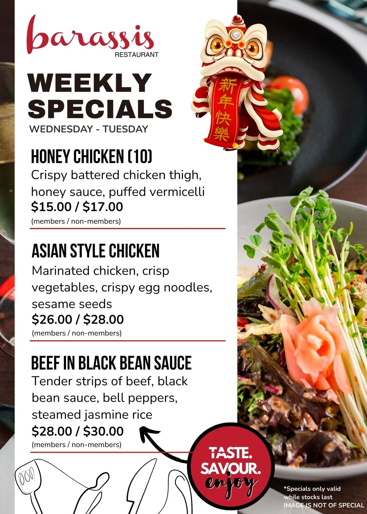 Our extensive menu caters to all tastes and dietary needs, including vegetarian options, low-gluten choices, and wholesome, healthy meals. For those with a smaller appetite, our Budget Busters options make dining even more affordable while still delivering the quality Barassis is known for.