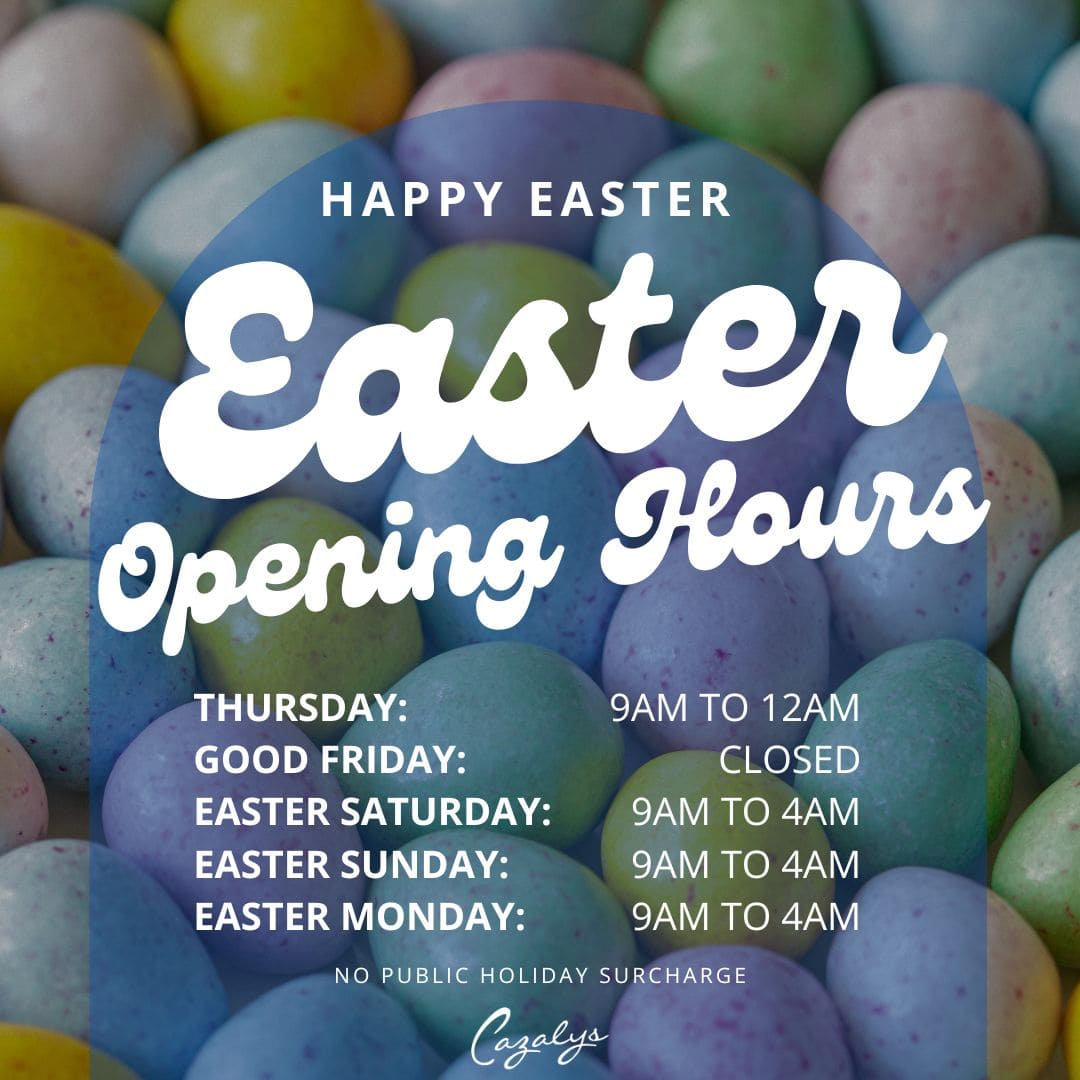 In line with liquor and gaming laws, Cazalys will be closing at 12am on Thursday April 2nd and reopening on Saturday April 4th at 9am. We are open Easter Saturday,…