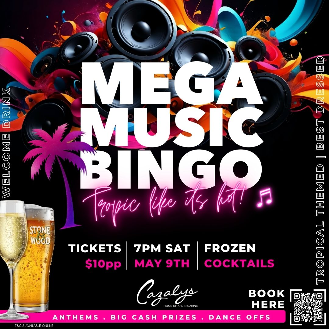 We are going to Tropic Like It’s Hot with Mega Music Bingo at Cazalys! Saturday May 9th come play music bingo like you’ve never seen it before – lip sync…