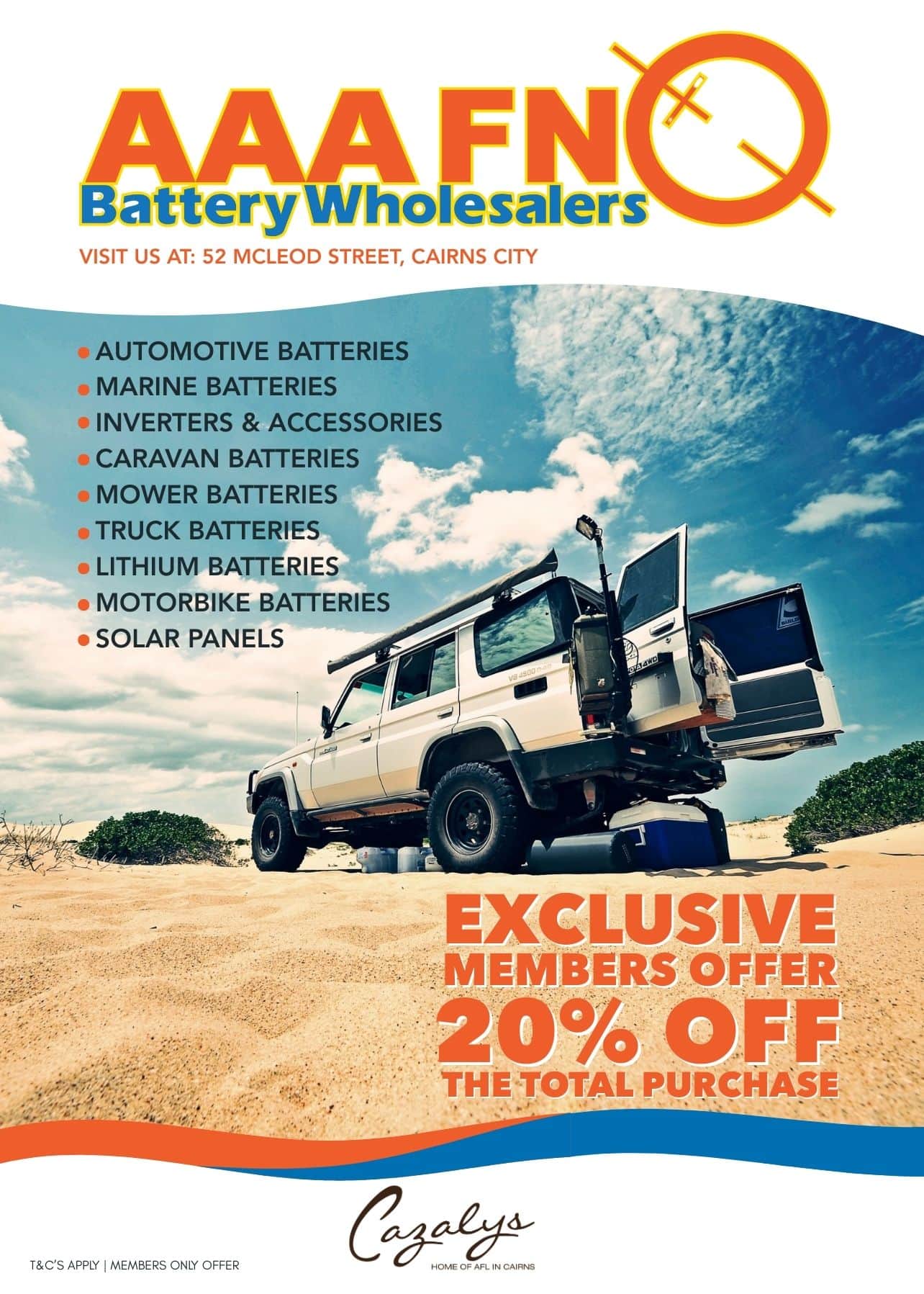 Only available to Current Cazalys Cairns Club Members