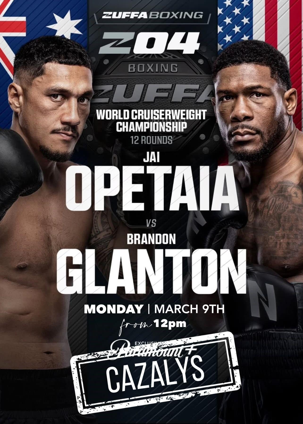 Zuffa Boxing 04 features IBF cruiserweight champion & hometown Australian hero Jai Opetaia facing Brandon Glanton of the U.S. The contest is set to crown the inaugural Zuffa Boxing cruiserweight champion.