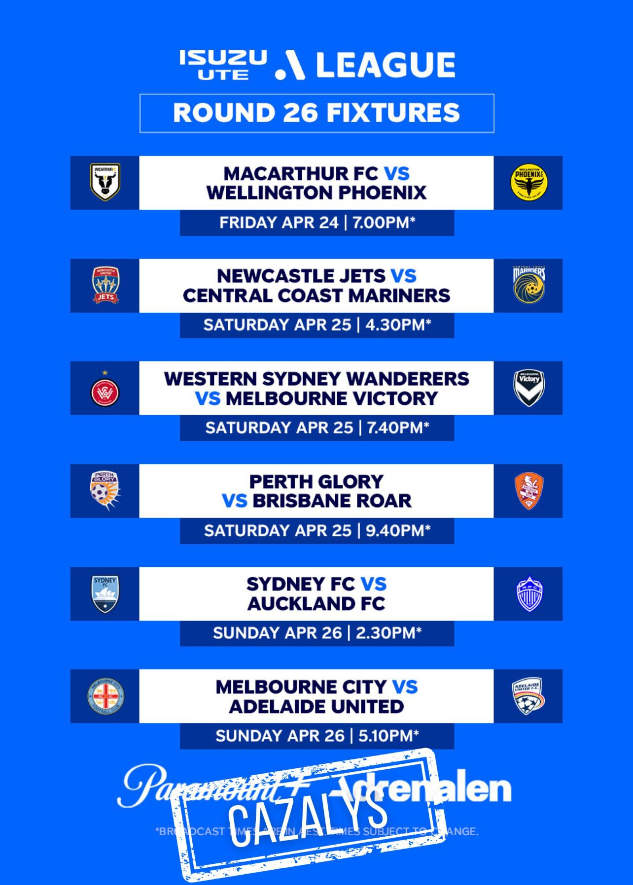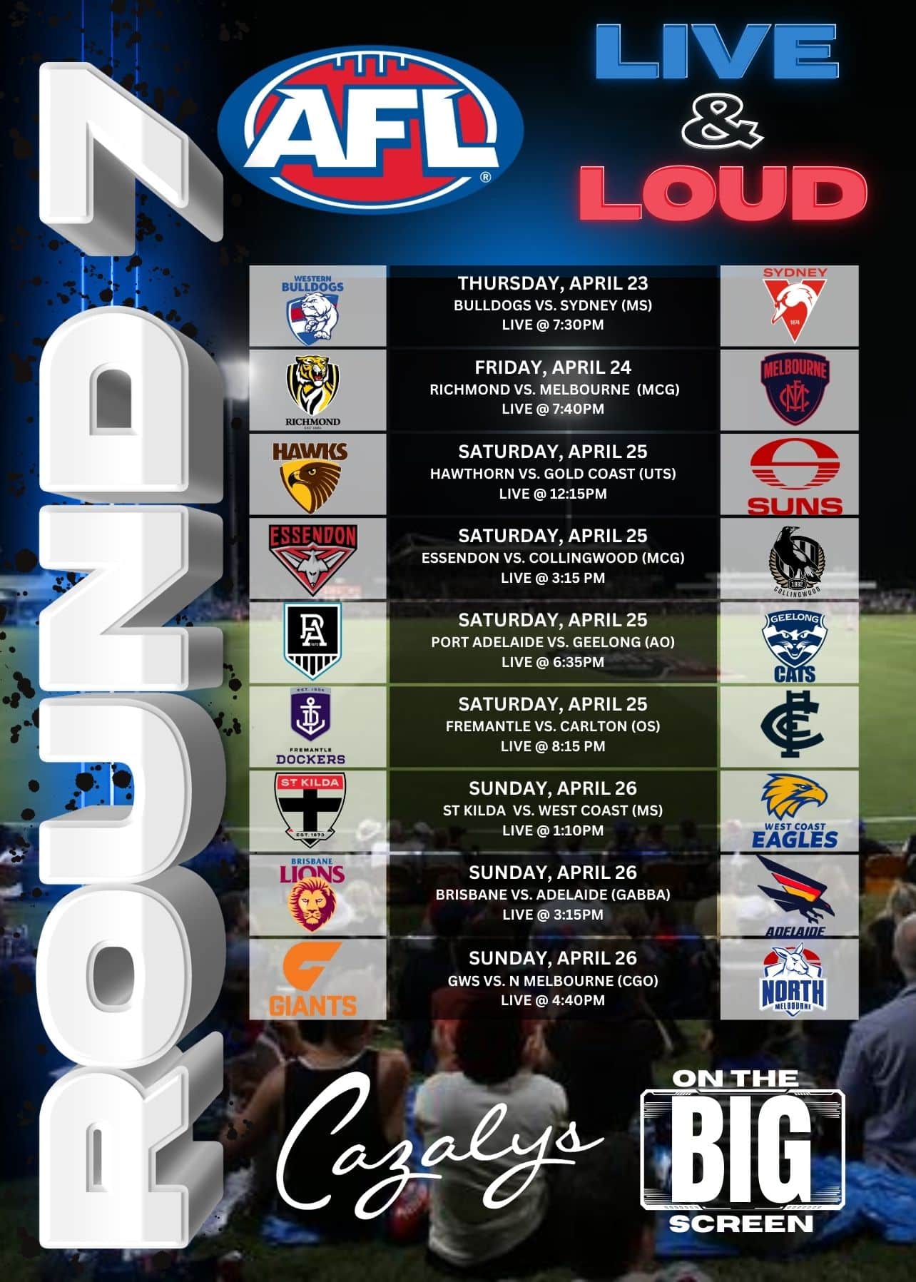 Catch all the action LIVE & LOUD on the big screen at Cazalys!