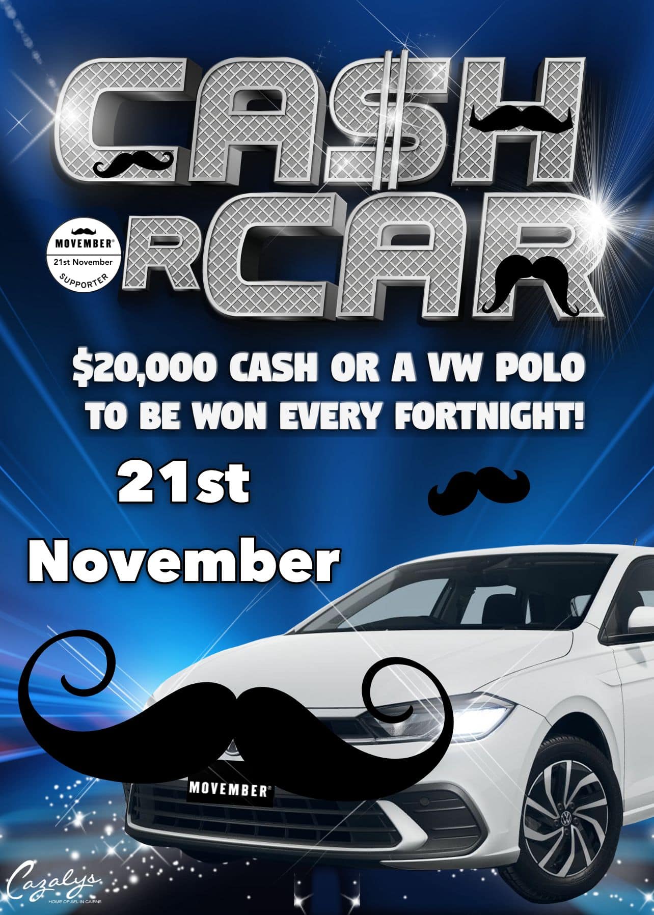 Description : MOVEMBER CASH OR CAR On our special Movember fundraisings Cash or Car draw night we will be playing themed games, having a famous mo’s best dressed competition, and have fake...