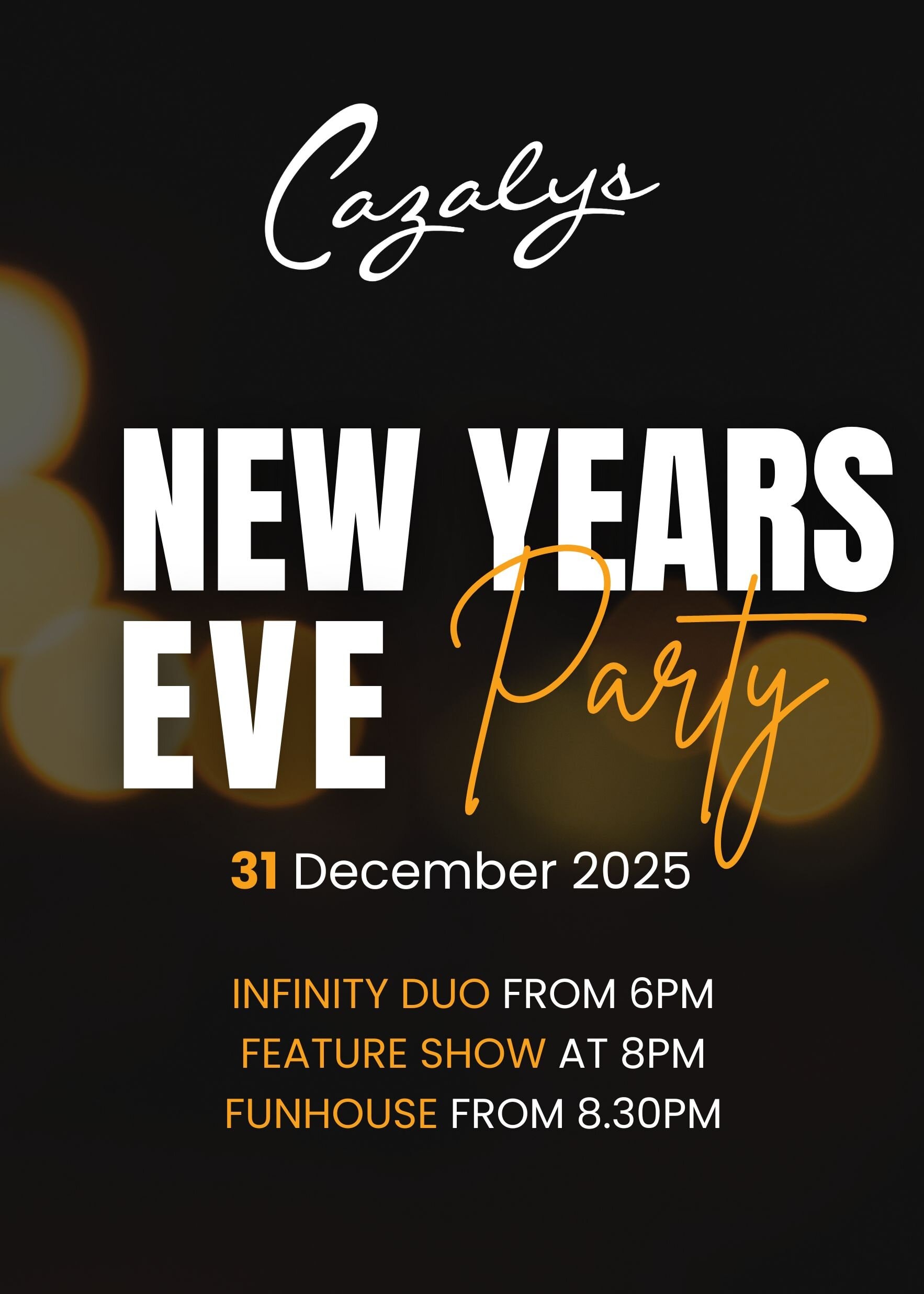 Description : NYE at Cazalys, doesn’t get any better than that. We have so much planned for the nights entertainment and prize giveaways – but our LIVE MUSIC will have you partying...